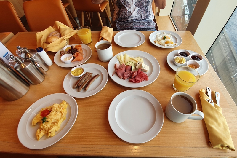 Esse gerne erst etwas Herzhaftes, Rührei, Spiegelei, Brot mit Lachs, Wurst Käse, dann etwas Süßes wie Pancake oder diese kleinen süßen Zöpfe mit Butter und Marmelade