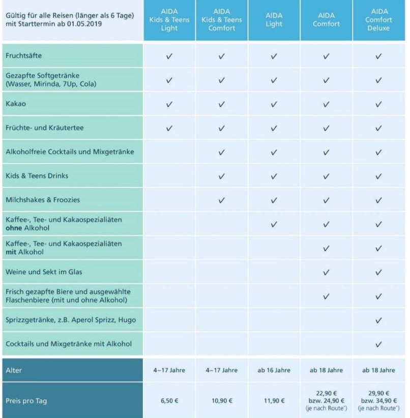 Hier > AIDA Premium All Inclusive & AIDA Pauschal All Inclusive Tarife < ist zu erkennen, dass bei den AI-Paketen das "Comfort-Deluxe" tatsächlich erst ab 25 Jahren gilt...