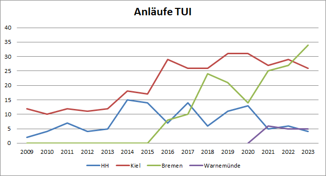 Bei der Reduzierung der Anzahl der Spitzbergen Touren kann ich mir vorstellen, dass TUI da nicht mehr mit den ganz großen Margen im Vergleich zu früher auch wegen der Länge und Konkurrenz mit AIDA rechnet, die die Tour mittlerweile 7 Mal pro Jahr fahren. TUI fokussiert sich zunehmend auf die Marktlücken, die AIDA offen lässt. Dazu gehören die 11 tägigen Nordkap mit Fjord Touren und besonders die UK und Irland Reisen. Besonders die Britischen Inseln und da besonders die Häfen an der Irischen See läuft AIDA kaum an. TUI hingegen umso mehr, auch weil sich Großbritannien ab Bremerhaven anbietet.