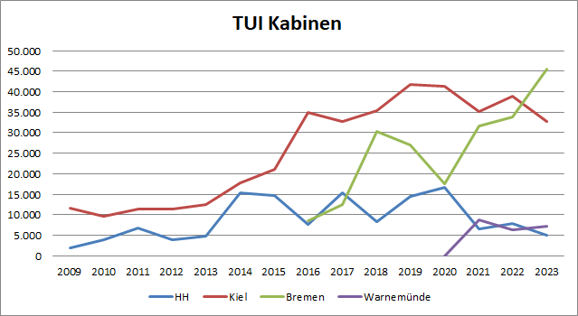 TUI scheint sich dieses Jahr mit einem Schiff mehr auf ein Ziel und einen Abfahrtshafen zu fokussieren. Normalerweise wechseln die Schiffe ja immer innerhalb einer Saison mehrfach ihren Heimathafen und auch das Zielgebiet und die Route. Daraus Resultiert, dass quasi jedes Schiff überspitzt gesagt mehr oder weniger mindestens einmal in Kiel und Bremerhaven gewesen war und auch jedes Zielgebiet irgendwann innerhalb des Jahres bedient hat. In 2023 hat TUI das jetzt etwas mehr geordnet. So kommen nach Kiel nun je 13 Mal die Mein Schiff 4 und 6. Nach Bremerhaven kommen 19 Mal die Mein Schiff 3 und 15 Mal die Mein Schiff 1. Dabei fährt die 3 hauptsächlich nach Großbritannien/ Irland und Island (und etwas Norwegen), während sich die MS1 sehr stark auf Norwegen fokussiert (besonders 11 Tage Nordkap und 8 Tage Fjorde). Die 1 soll soger einmal nach Skjolden fahren, was wenn ich mich nicht irre ein Erstanlauf werden dürfte. Die MS1 geht dann noch 5 Mal nach Warnemünde, was noch etwas dem alten Schema folgt. Das war es dann aber auch mit dem Wechseln zwischen Ostsee und Nordsee. Die 4 und 6 bleiben jeweils die ganze Saison in Kiel und kommen je nur einmal für ihre Überführung am Anfang und Ende der Saison nach HH. Großer Profiteur ist 2023 Bremerhaven, die erstmals wichtigster Abfahrtshafen werden, während Kiel dann doch noch etwas mehr verliert. Hamburg wird wie erwartet weiter von TUI vernachlässigt und hauptsächlich nur zu besonderen Terminen wie dem Hafengeburtstag und den Cruise days angelaufen, wo die MS6 doch wie JonPhi vermutet hat am Samstag teilnimmt.