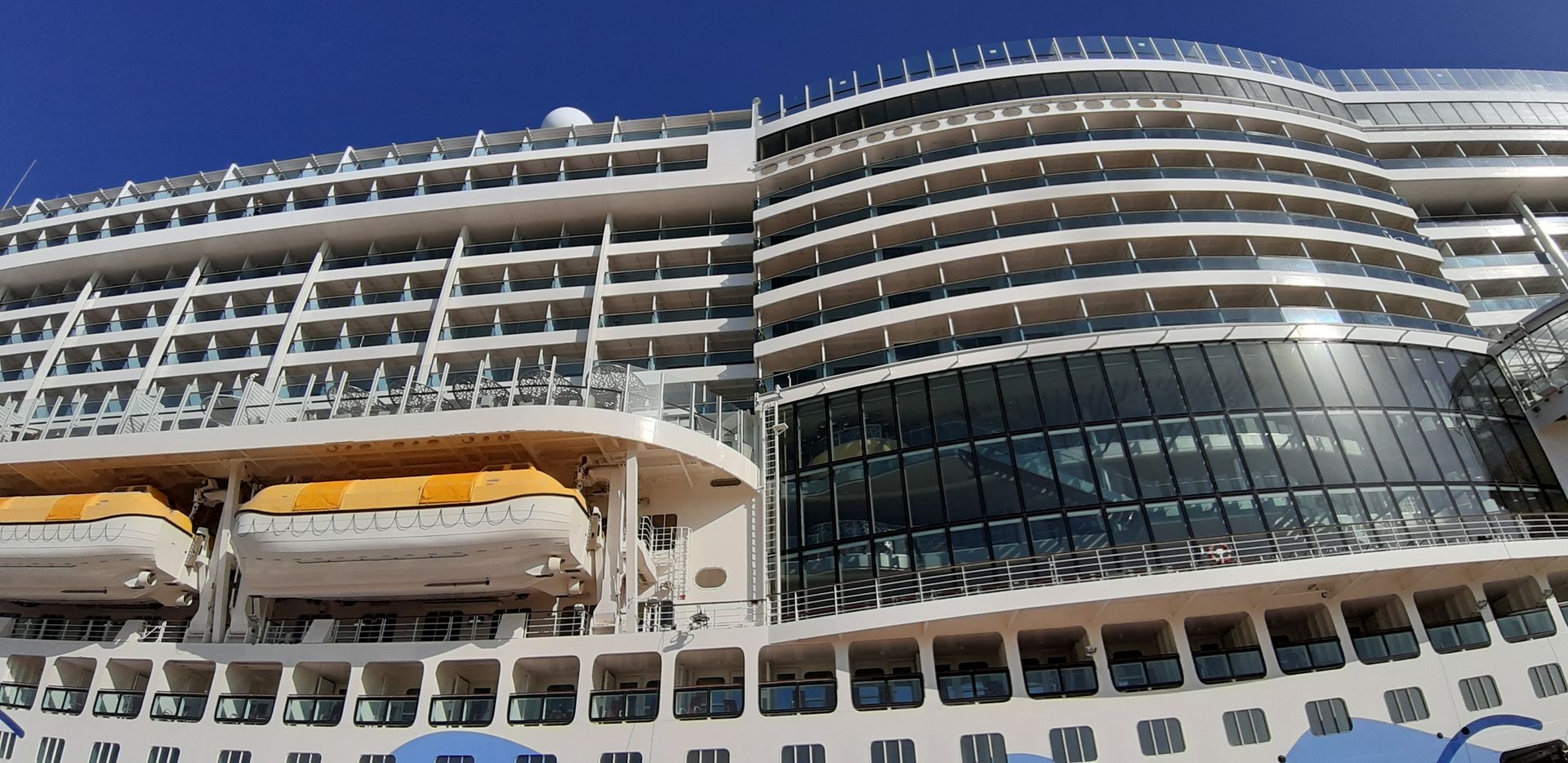 Gute Sicht auf die Nock und die darunter liegenden Balkone und teilweise auch die Wasserbecken auf Deck 8.