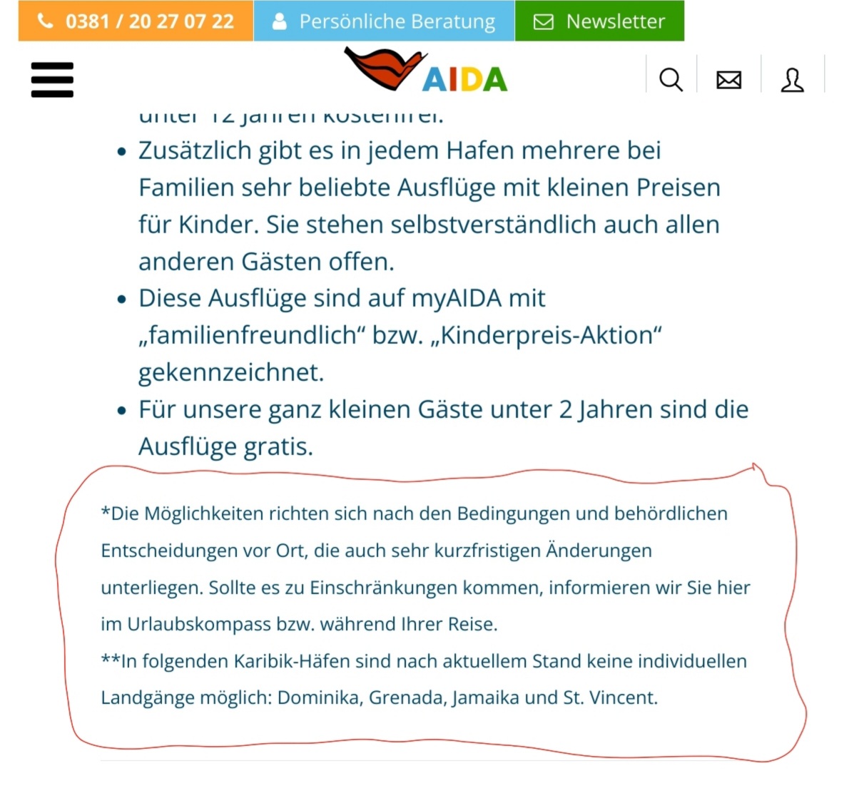 Auf die Hotline kann man wirklich nicht vertrauen. Entweder, man hat einen festen Berater bei AIDA oder liest sich hier im Forum durch; das ist auf jeden Fall sicherer.