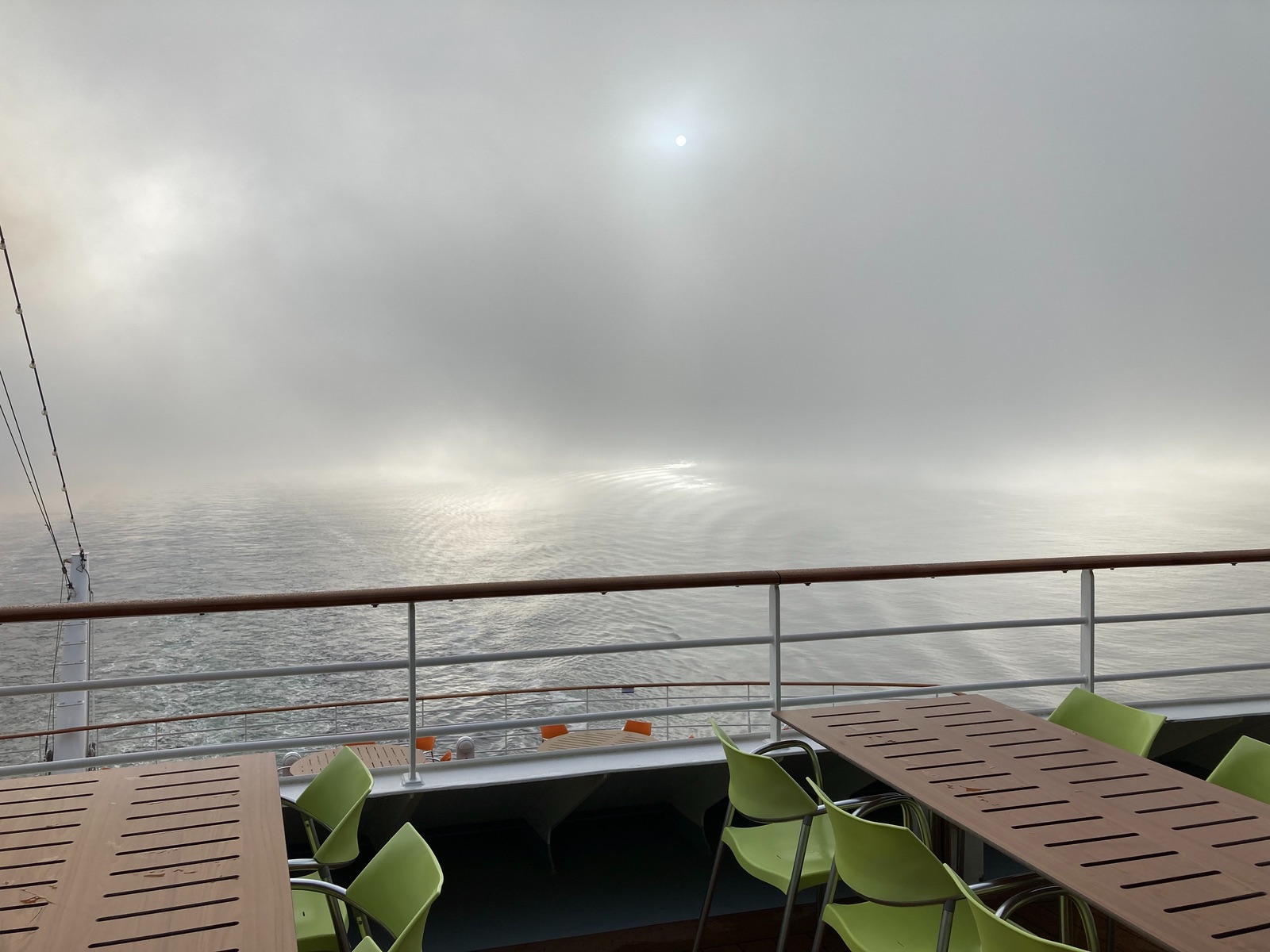 Wir Passieren gerade die Öresundbrücke und haben sogenannten Seenebel.