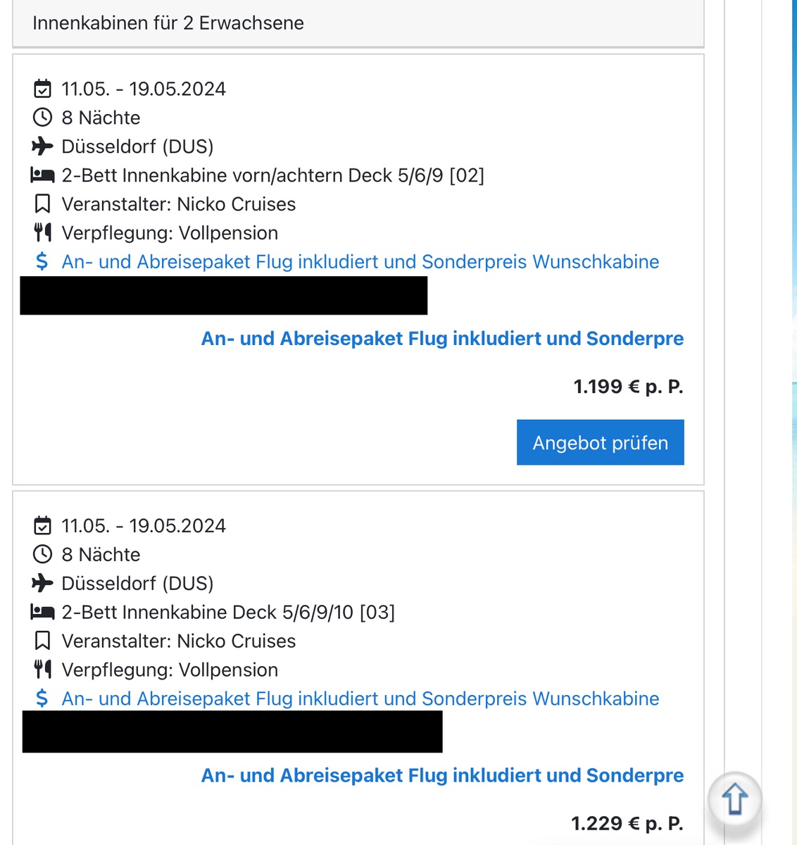 Es wird mir bei jeder Buchung, ob Garantiekabine oder Wunschkabine, ein Preis für den Flug berechnet......ich gehe mit Firefox auf die Nicko Seite, habe auch schon Edge probiert, da ist es genauso. Und das egal, ob ich von München oder Frankfurt anreisen will.....seltsam.Wo kann man eigentlich schauen, welche Kabinen eine echte Dusche haben? Mir ist es eigentlich nicht so wichtig, vielleicht ist eine Badewanne mit Glaswand sogar besser, als eine Dusche mit Vorhang, aber halt nur interessehalber.....