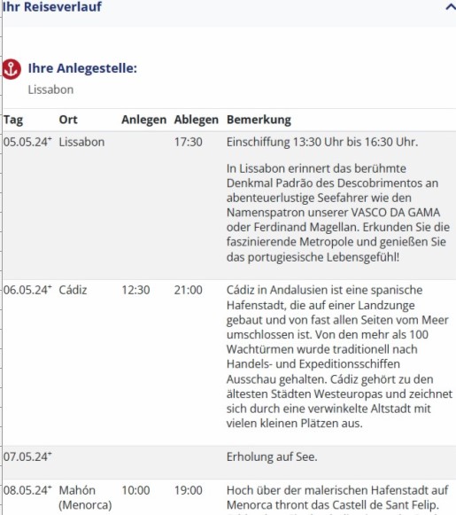 Habe mir dann den Reiseverlauf angesehen und festgestellt, dass anstatt Cartagena ein Seetag angezeigt wird.