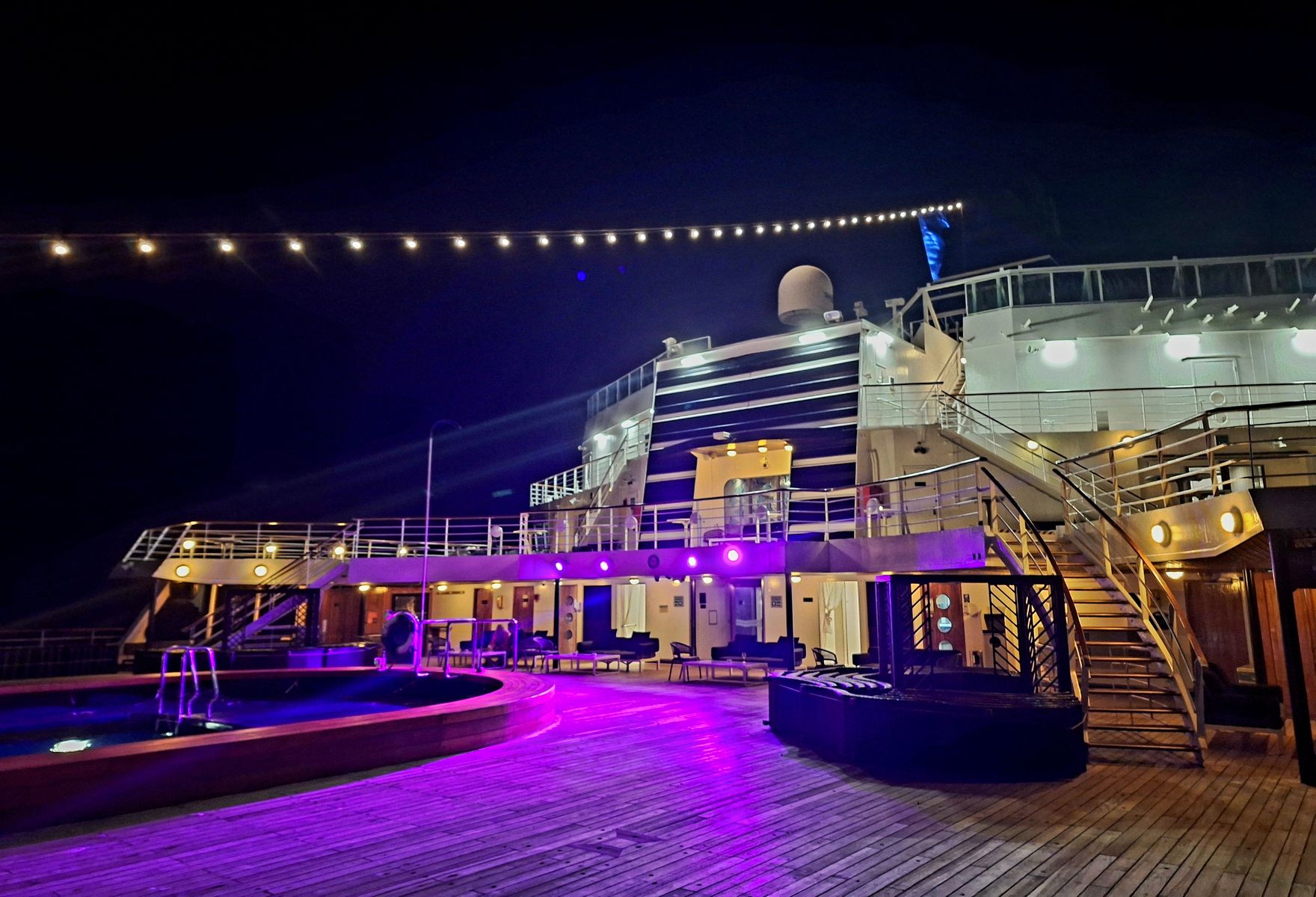 Abends kann man übrigens in die Aussenkabinen auf Deck 6 hineinschauen, wenn das Licht an ist.