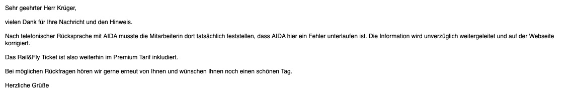 ich habe jetzt nachgefragt bei AIDA. Mal schauen, ob es eine Antwort gibt. Und wann