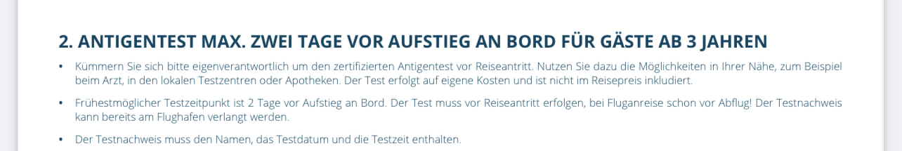Wichtig ist evtl. der Zusatz in Punkt 2 des Dokumentes: "Der Test muss vor Reiseantritt erfolgen, bei Fluganreisen schon vor Abflug!"