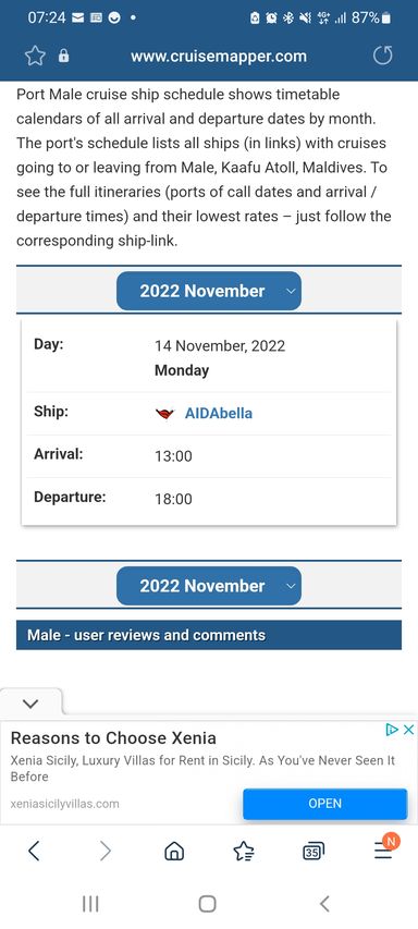 Wir haben jetzt mal die Hafeninfos angeschaut. Die Bella ist auf unserer Route in den Häfen gemeldet...Also da scheint jemand schlecht recherchiert zu haben....Beispiele Male u. Bangkok ...