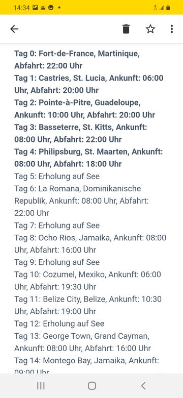 Welche Tour meinst Du? Geht ja im Moment alles ziemlich durcheinander mit den Diva-Touren. War gestern auch aus Versehen im falschen Thread. Aber hier ist doch die Tour 04.12. Bis 18.12..