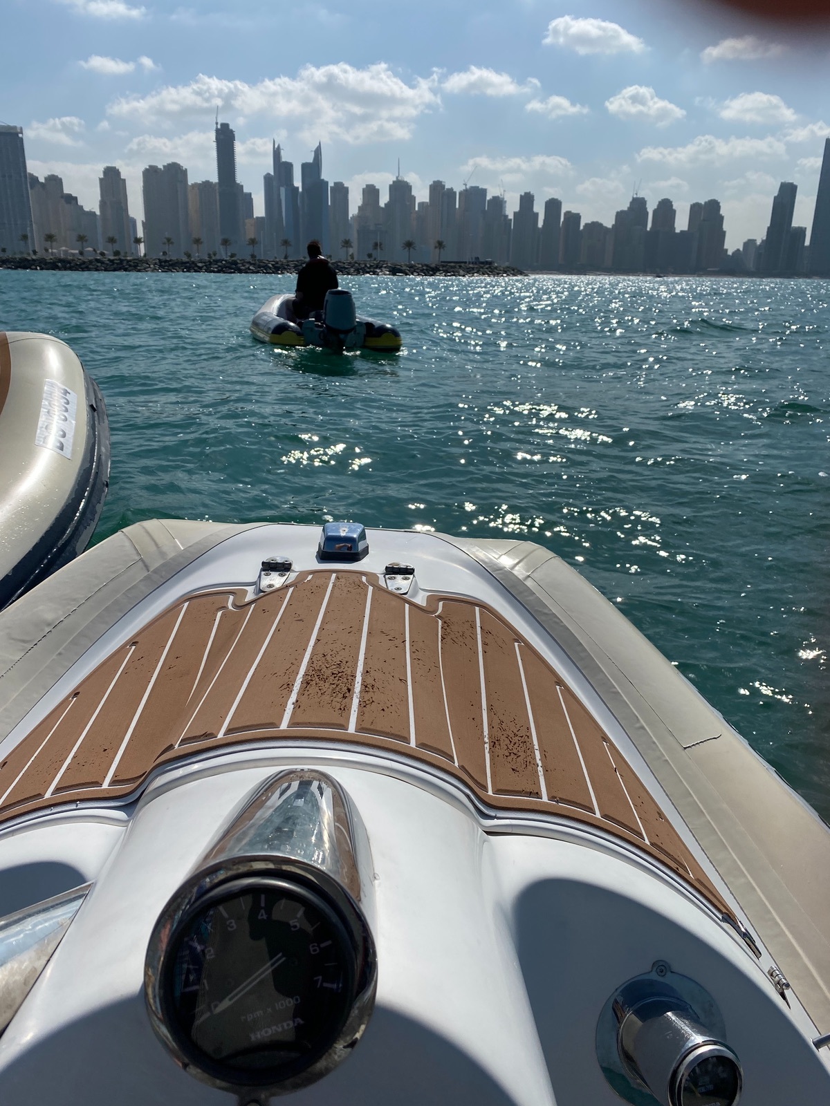 Nachdem die Skyline von Abu Dhabi plötzlich immer mehr aus dem Morgendunst aufgetaucht ist, liegen wir nun fest. Unterwegs schon begrüßt von einem 2m Hai, der dicht unter dem Wasser seine typischen Kreise zog.(Ehrlich). Es hat sich offenbar rumgesprochen: Europäisches Frischfleisch hat Badeausflüge gebucht. :hunger::zwinker: