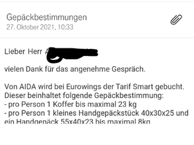 So hat AIDA den Hinflug gebucht..... also doch nur kleines Handgepäck.......