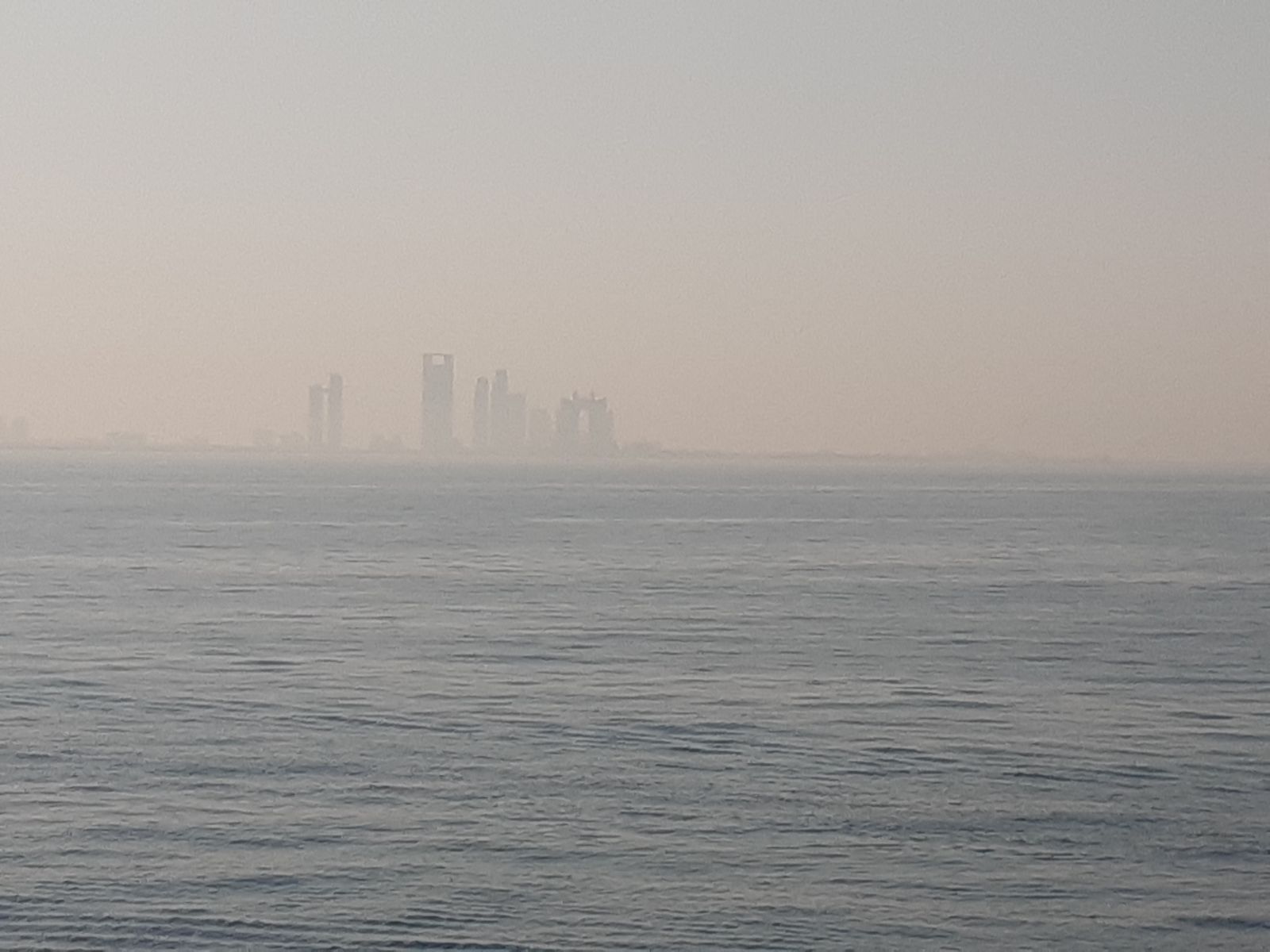 Nachdem die Skyline von Abu Dhabi plötzlich immer mehr aus dem Morgendunst aufgetaucht ist, liegen wir nun fest. Unterwegs schon begrüßt von einem 2m Hai, der dicht unter dem Wasser seine typischen Kreise zog.(Ehrlich). Es hat sich offenbar rumgesprochen: Europäisches Frischfleisch hat Badeausflüge gebucht. :hunger::zwinker: