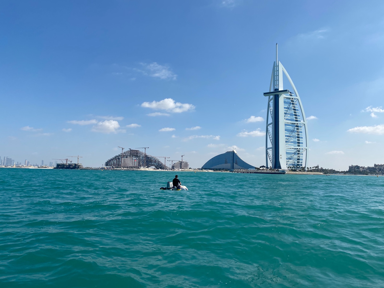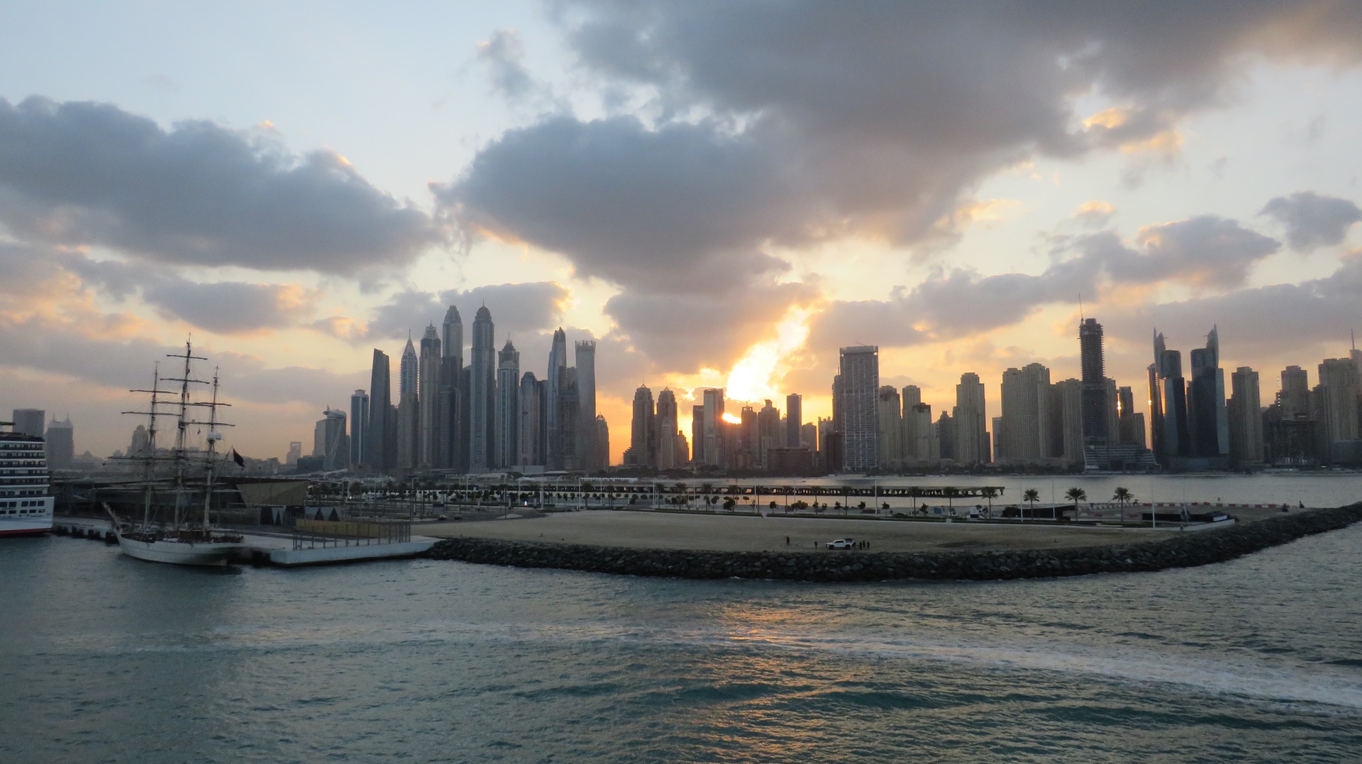 Nachdem die Skyline von Abu Dhabi plötzlich immer mehr aus dem Morgendunst aufgetaucht ist, liegen wir nun fest. Unterwegs schon begrüßt von einem 2m Hai, der dicht unter dem Wasser seine typischen Kreise zog.(Ehrlich). Es hat sich offenbar rumgesprochen: Europäisches Frischfleisch hat Badeausflüge gebucht. ![]()