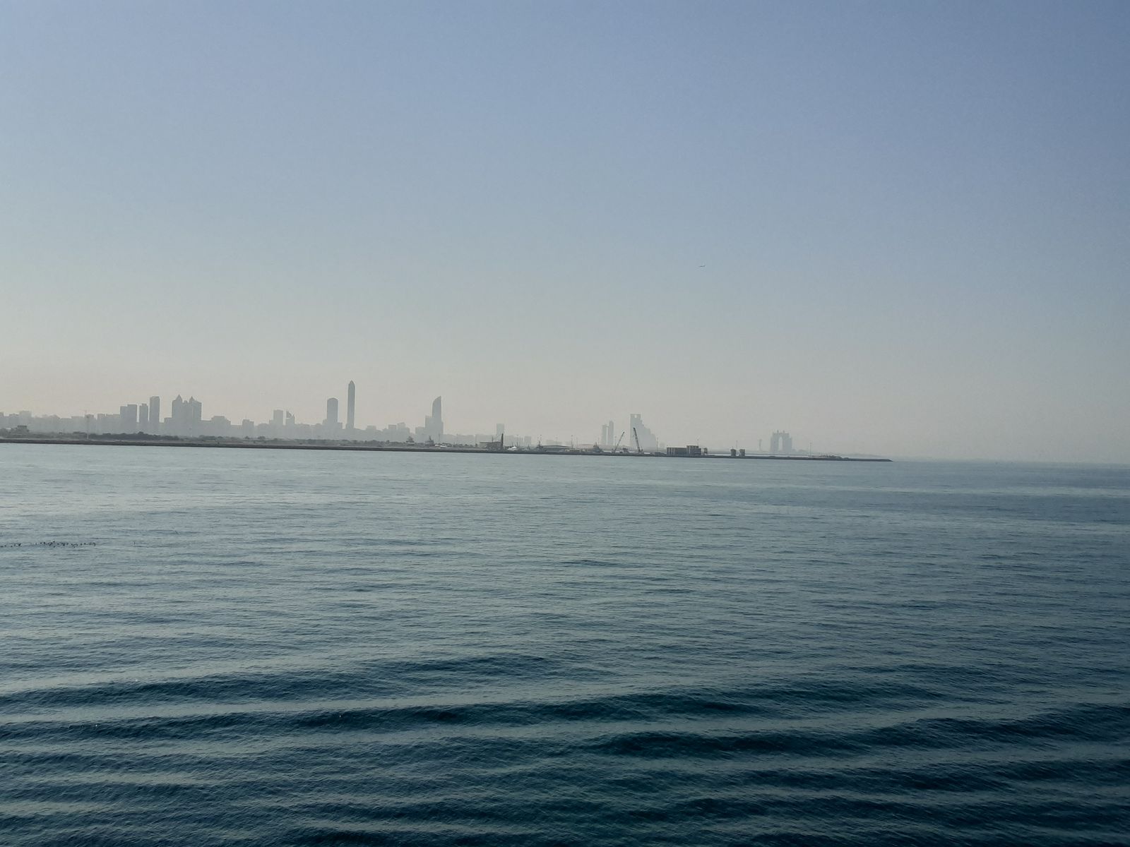 Nachdem die Skyline von Abu Dhabi plötzlich immer mehr aus dem Morgendunst aufgetaucht ist, liegen wir nun fest. Unterwegs schon begrüßt von einem 2m Hai, der dicht unter dem Wasser seine typischen Kreise zog.(Ehrlich). Es hat sich offenbar rumgesprochen: Europäisches Frischfleisch hat Badeausflüge gebucht. :hunger::zwinker: