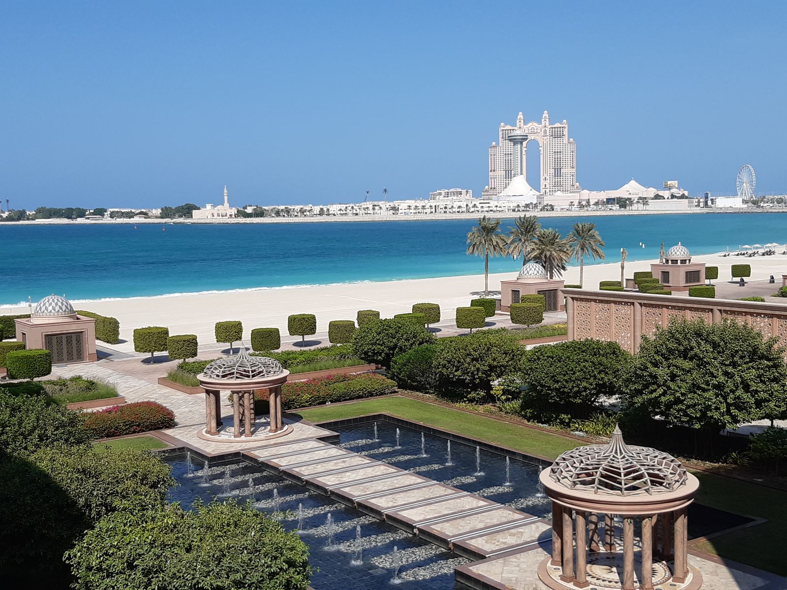 Nachdem die Skyline von Abu Dhabi plötzlich immer mehr aus dem Morgendunst aufgetaucht ist, liegen wir nun fest. Unterwegs schon begrüßt von einem 2m Hai, der dicht unter dem Wasser seine typischen Kreise zog.(Ehrlich). Es hat sich offenbar rumgesprochen: Europäisches Frischfleisch hat Badeausflüge gebucht. ![]()