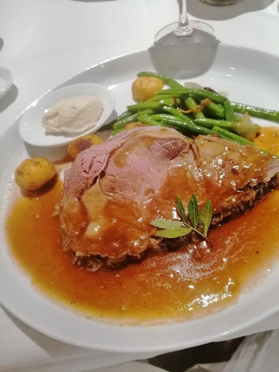 drinnen eine mittelalterliche Spelunke mit Kerzenlicht und ohne Tischdecken. Es gibt Selbstgebrannten und viel Nostalgie. Die Mitarbeiter tragen Kostüme und verleihen dem Spektakel viel Spaß. Um das Gebäude rum sind die Wappen alter Hansestädte zu sehen...