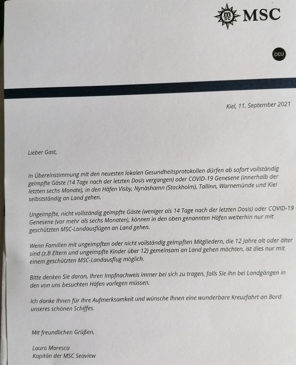 • RE: RB MSC Seaview 11.09.-17.09.2021 Kiel - Warnemünde