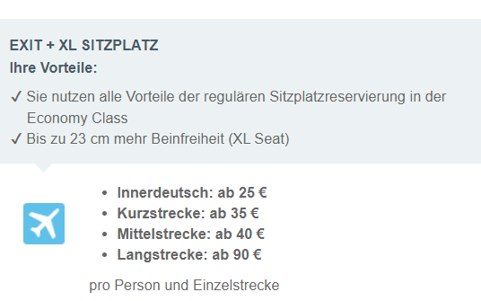 Ich habe Premium Eco und für den Sitzplatz am Notausgang nichts bezahlt. War mir da nicht so sicher, ob diese Reservierung auch kostenlos ist.