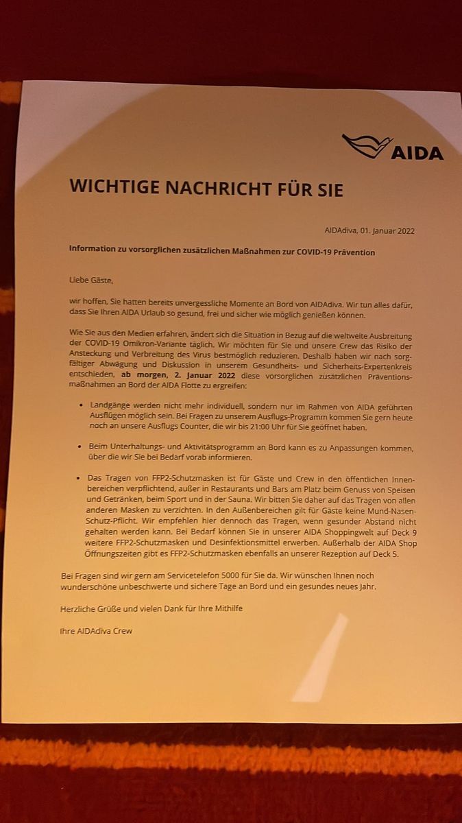 Ich kann jedem nur empfehlen, sich rechtzeitig die dritte Impfung abzuholen, denn ich kann mir nicht vorstellen, dass wir ohne diese an Bord kommen, weil die zweite Impfung bei den meisten dann schon zu lange her ist.
