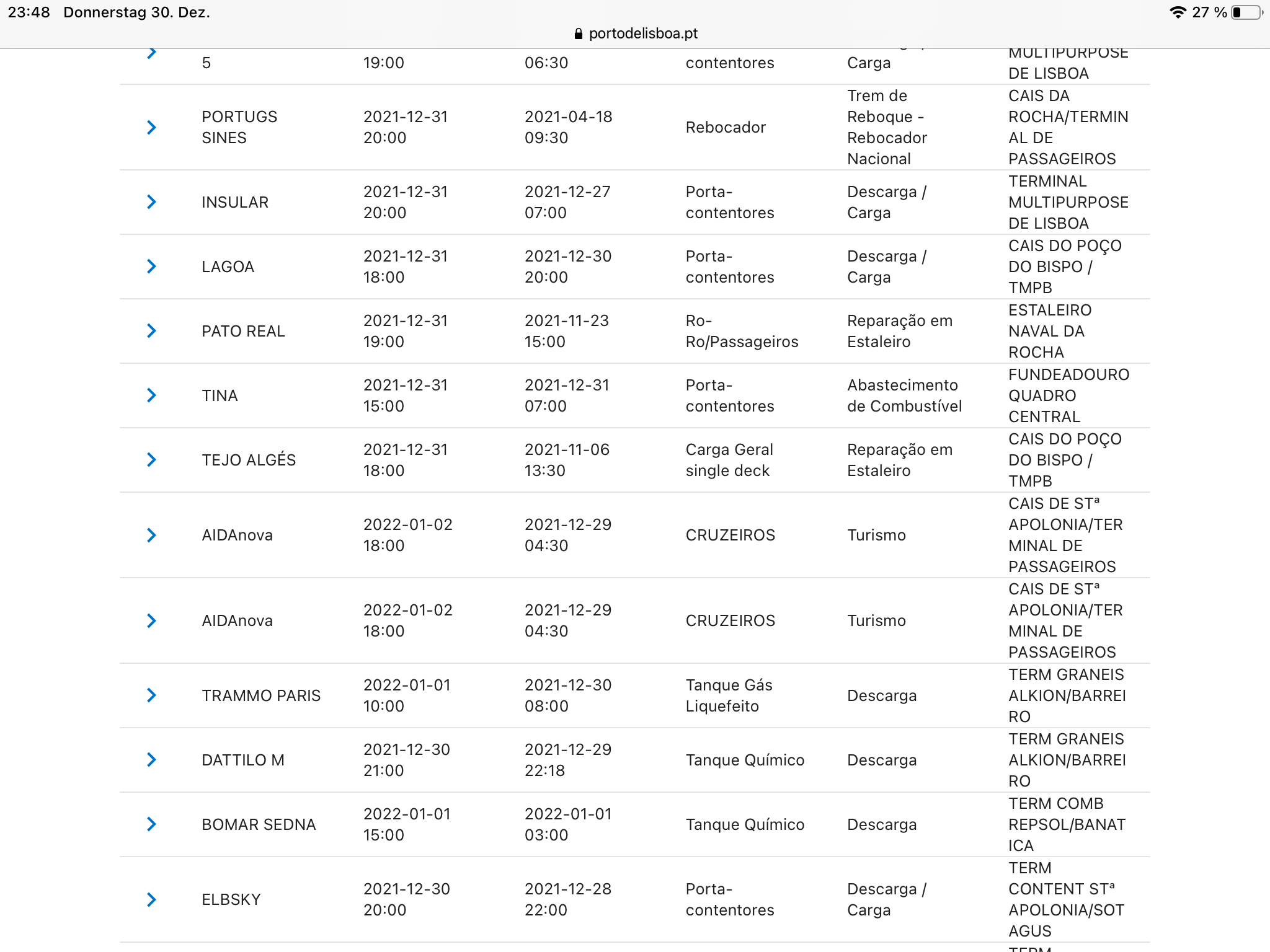 Dann muss die AIDAnova bis Arrecife aber auch gut Gas machen. Bei Abfahrt um 1 Uhr (am 01.01.) muss die AIDAnova dann gute 20kt Durchschnittsgeschwindigkeit haben, um am 02.01. pünktlich nach gut 1150km Arrecife zu erreichen.