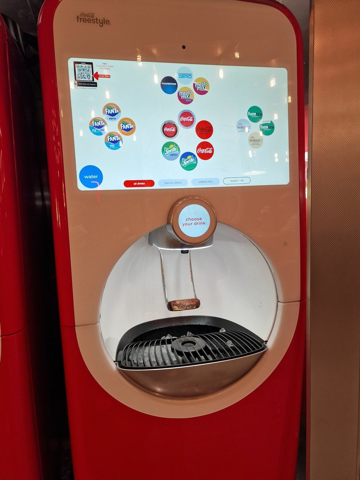 Im Buffett mit burger ( weiß gerade den Namen nicht) gibt es eine Cola Freestyle Maschine. Wenn dort bist könntest mal schauen ob die beim Getränke Paket dabei ist und wie es fintioniert? Mag Cola Zero kirsch dort und raspberry und Erdbeere gibt es glaub auch noch wenn sie das volle Programm haben.