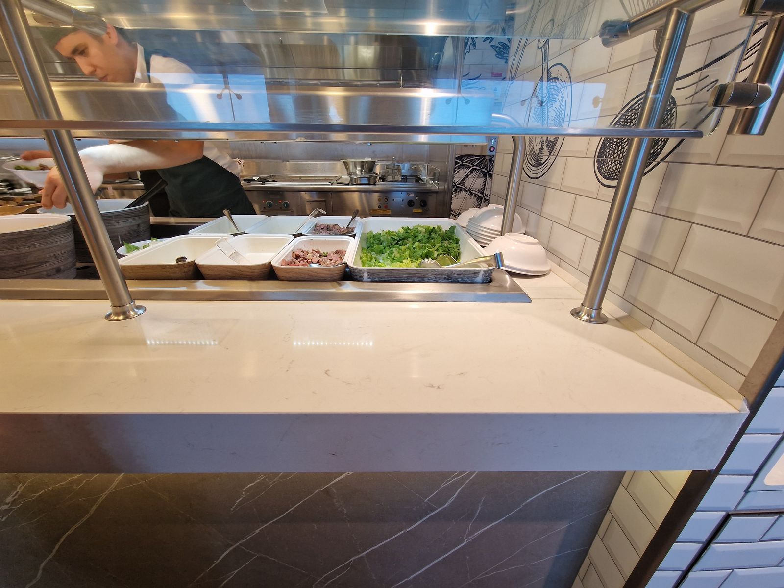 Ein paar Fotos vom Mittagsbuffet. Das ist m.E.kleiner als auf anderen Schiffen. Jedenfalls im Vergleich zu Splendida, wo das Buffet gefühlt drei Viertel der Schiffslänge einnimmt. Allerdings wiederholen sich auf der Splendida die Stationen auch, hier ist das Buffet rechts und links gleich, aber keine Wiederholung entlang des Buffets.