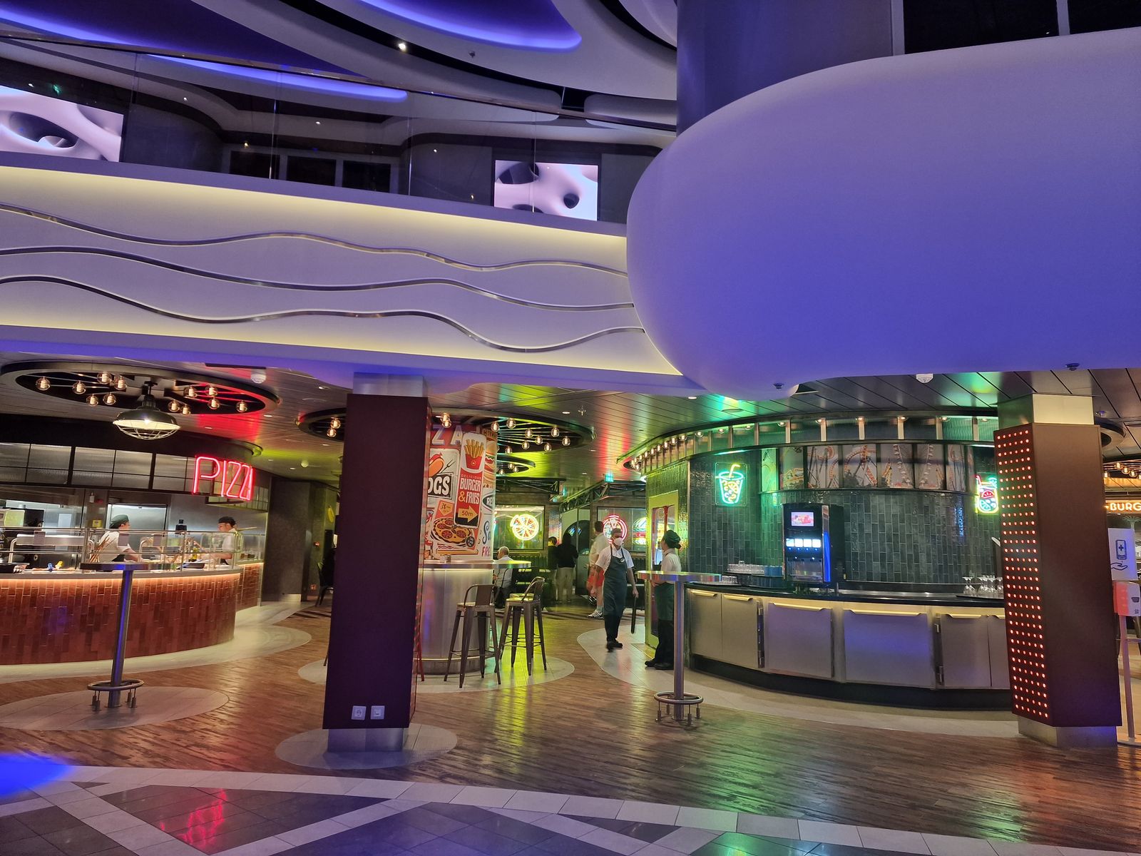 Panorama Lounge auf dem Schiff, das ist eines der drei Theater hier. Wir warten gerade auf die Vorstellung.