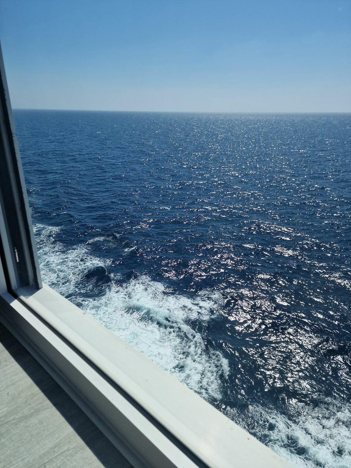 Guten Morgen.....so ein freier Blick aufs Meer, wenn man auf der Couch sitzt, der hat schon was :wiegeil: Und die Sonne wärmt schön durch die Fensterscheibe. Bisher kann ich diese Kabine wirklich empfehlen.....eine Mitreisende hat sie gestern gesehen und war enttäuscht, dass sie selbst von Infinity auf Balkon upgegraded wurde :hahaha: Zumal ich so ein offenes Regal und einen Schminktisch habe. :love: