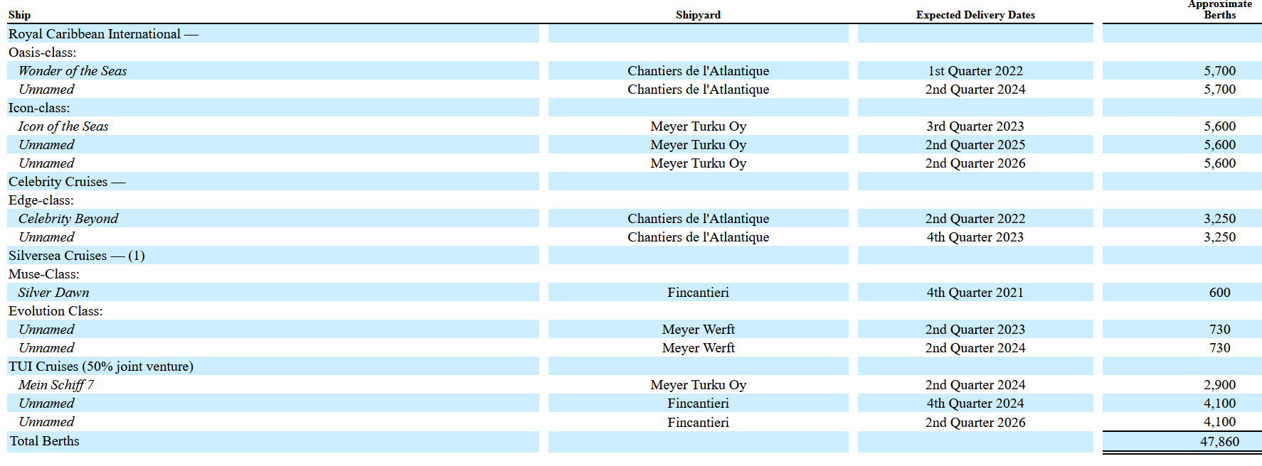 siehe Royal Caribbean Quartalsbericht Q3 2021, Seite 22