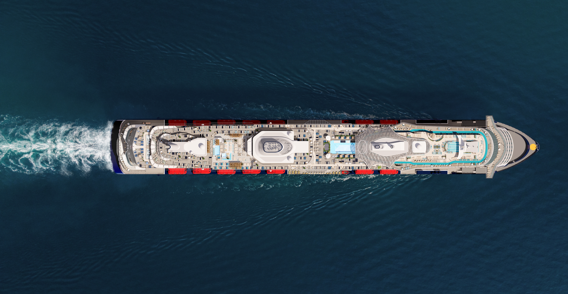 Es gibt erste Bilder und Informationen zu den oberen Außendecks des 8/9. Schiffes sowie eine Außenansicht und Draufsicht.