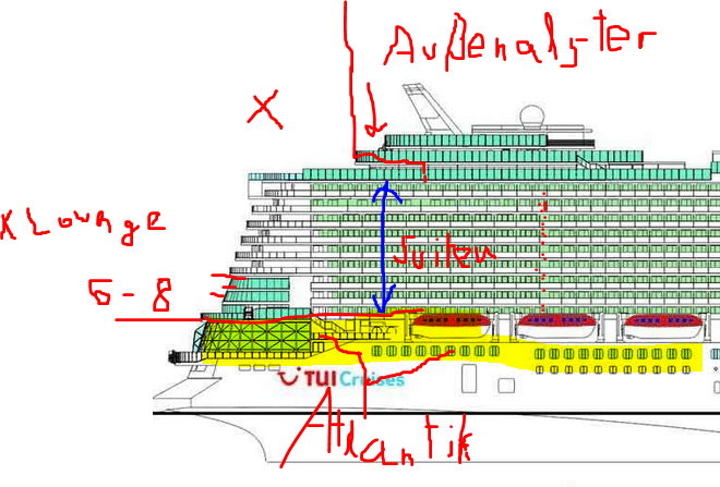 Und was sind das jetzt für Kabinen auf Deck 15? (bzw. Deck 14, falls es diesmal ein Deck 13 geben sollte) Zu schmal für JSen, aber Balkonkabinen würden dort nicht ins Schiff-im-Schiff-Konzept passen. Oder was könnte da noch sein?
