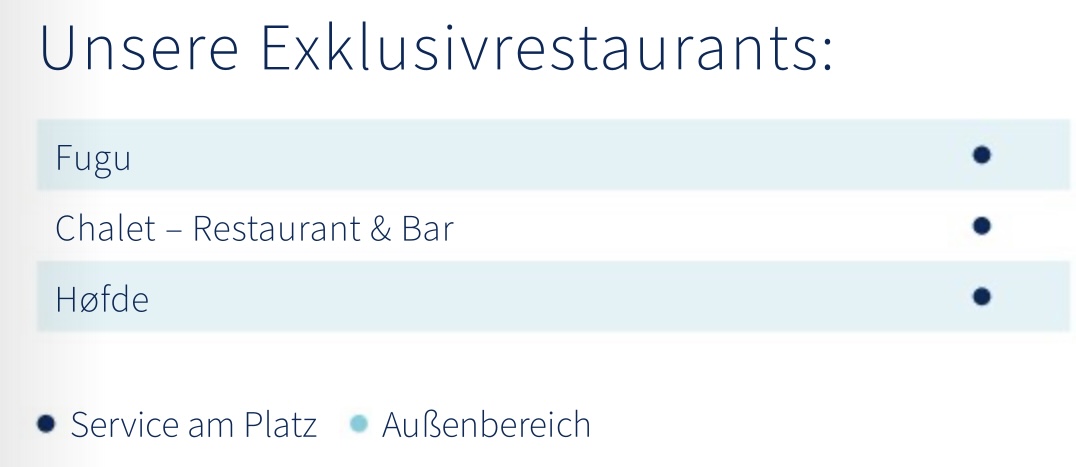 Die Doppelbettbelegung wird also bei 3864 liegen. Der Unterschied mit 120 zusätzlichen Betten zur Maximalkapazität ist sehr niedrig. Die anderen kleineren Schiffe können 244, 260, 238 und 236 Passagiere mehr befördern. Wenn das so stimmt, dann wird es für die Familien in den Ferien noch schwieriger auf das Schiff zu kommen. Gewissermaßen wird die Mein Schiff Relax dadurch durch die Hintertür zu einem adults only Schiff. Das passt ja auch stückweise zu dem mauen Angebot für Familien im öffentlichen Raum.