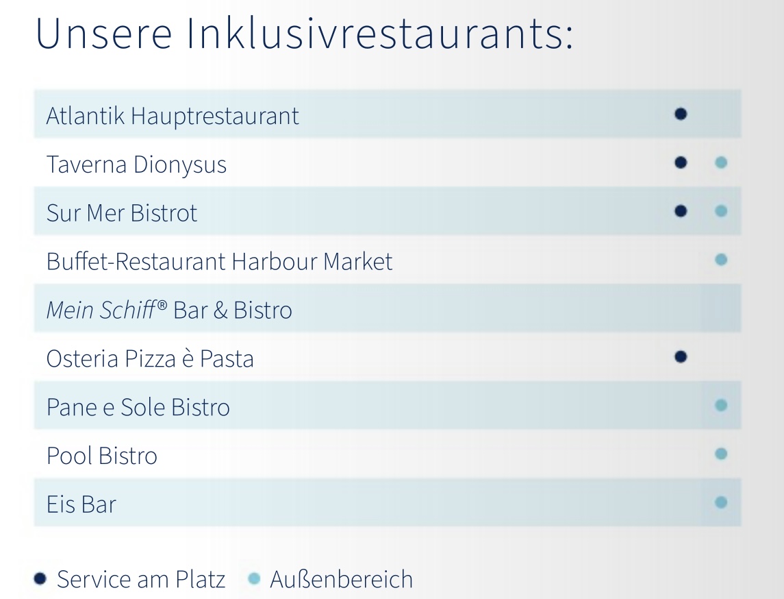 Die Doppelbettbelegung wird also bei 3864 liegen. Der Unterschied mit 120 zusätzlichen Betten zur Maximalkapazität ist sehr niedrig. Die anderen kleineren Schiffe können 244, 260, 238 und 236 Passagiere mehr befördern. Wenn das so stimmt, dann wird es für die Familien in den Ferien noch schwieriger auf das Schiff zu kommen. Gewissermaßen wird die Mein Schiff Relax dadurch durch die Hintertür zu einem adults only Schiff. Das passt ja auch stückweise zu dem mauen Angebot für Familien im öffentlichen Raum.
