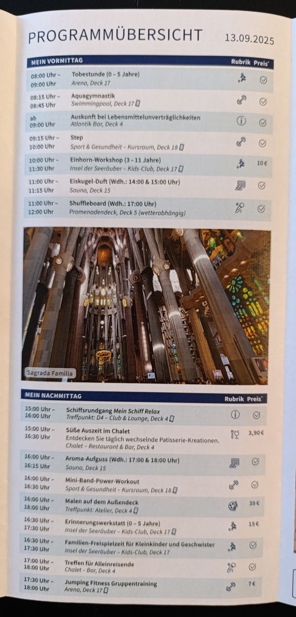Ach so... Die Öffnungszeiten der Restaurants würden mich interessieren, stehen die ebenfalls im Tagesprogramm?