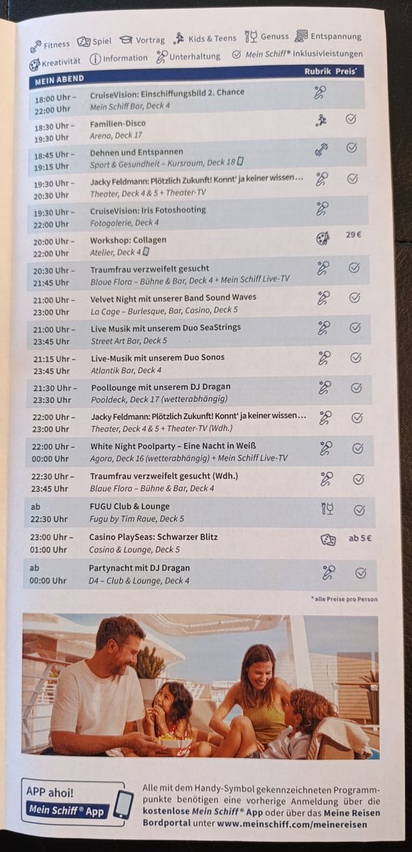 Ach so... Die Öffnungszeiten der Restaurants würden mich interessieren, stehen die ebenfalls im Tagesprogramm?