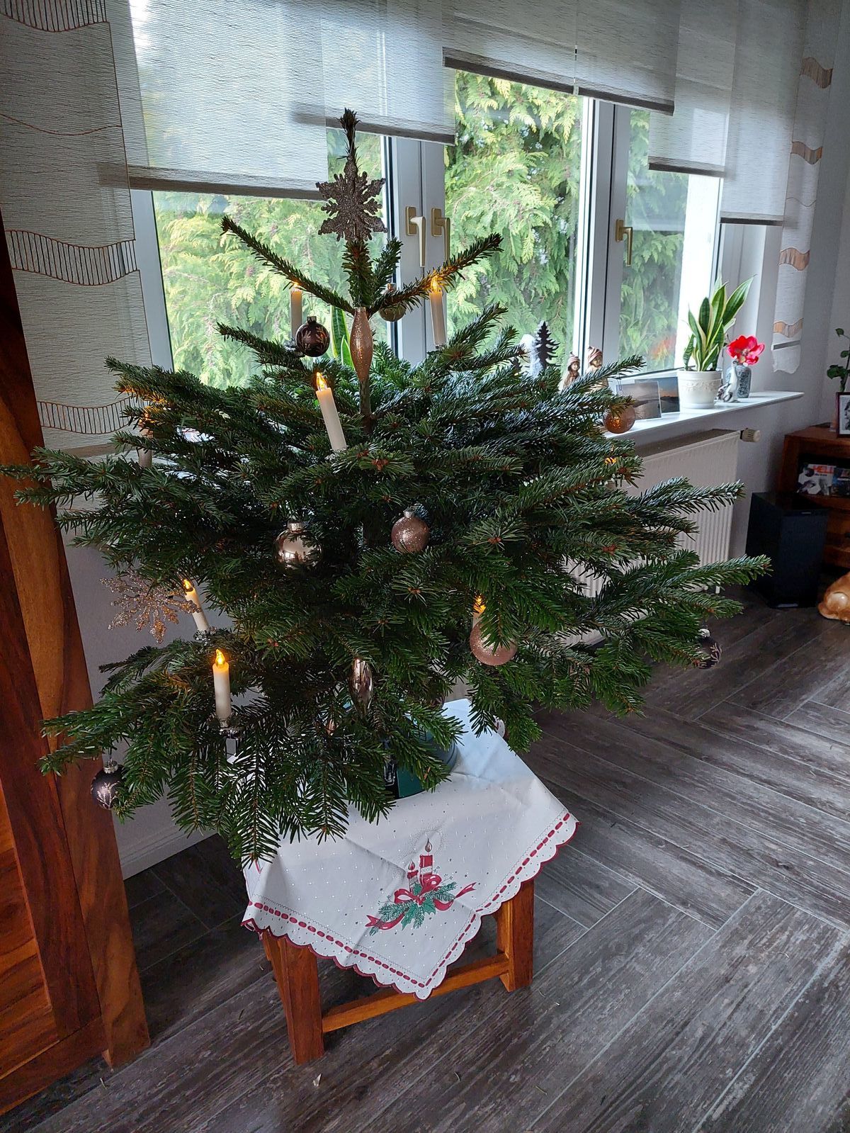 Kleine Anekdote am Rande: Vor zwei Jahren habe ich für unsere Mitarbeiter in der Abteilung einen künstlichen Tannenbaum gekauft und jeder sollte/durfte Baumschmuck mitbringen. Letztes Jahr haben wir ihn bei einem kleinen Umtrunk erneut geschmückt, gestern dachte ich, ich mache das mal allein. Eine halbe Stunde später hörte ich, wie eine Kollegin vor meinem Büro sagte: "Das sieht aber überhaupt nicht schön aus" und dekorierte den Baum um