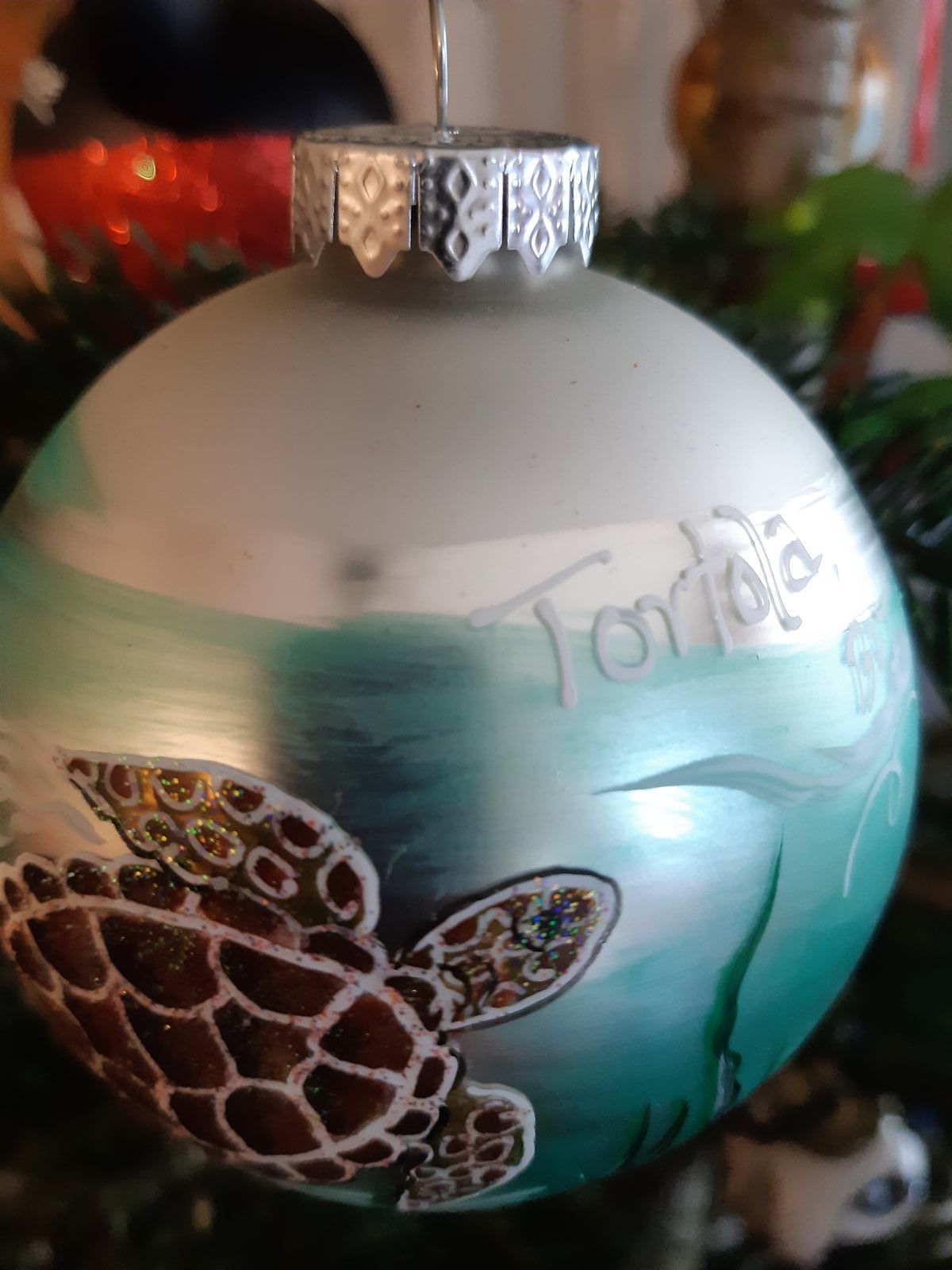Wir haben uns zwei Weihnachtskugeln auf Antigua bei unserer letzten Reise gekauft.
