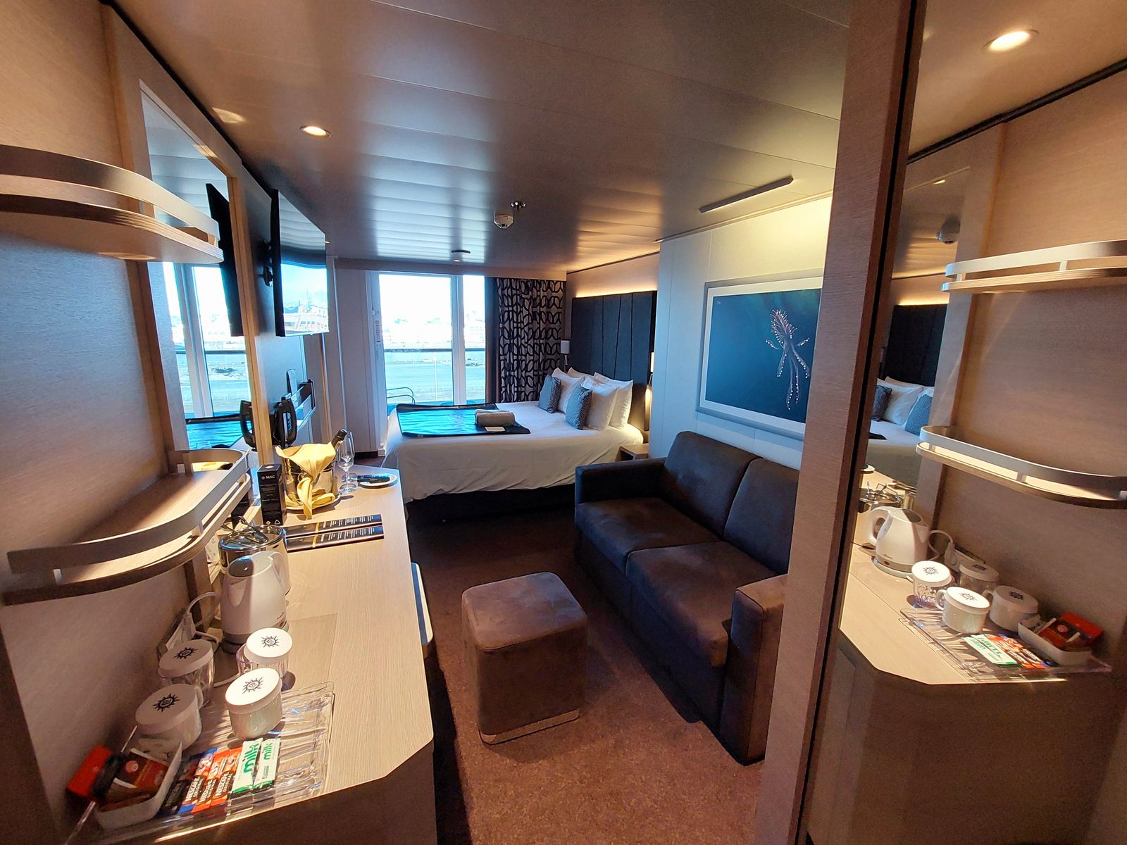 Als fünfköpfige Familie hatten wir eine Premium Ocean View Kabine. Für uns das erste Mal ohne Balkon. Auf Grund des Fahrgebietes und der Jahreszeit haben wir diesen jedoch nicht vermisst. Die Kabine war sehr geräumig und hatte zudem viel Stauraum. Deutlich mehr, als z.B. in einer Veranda Deluxe auf Aida.