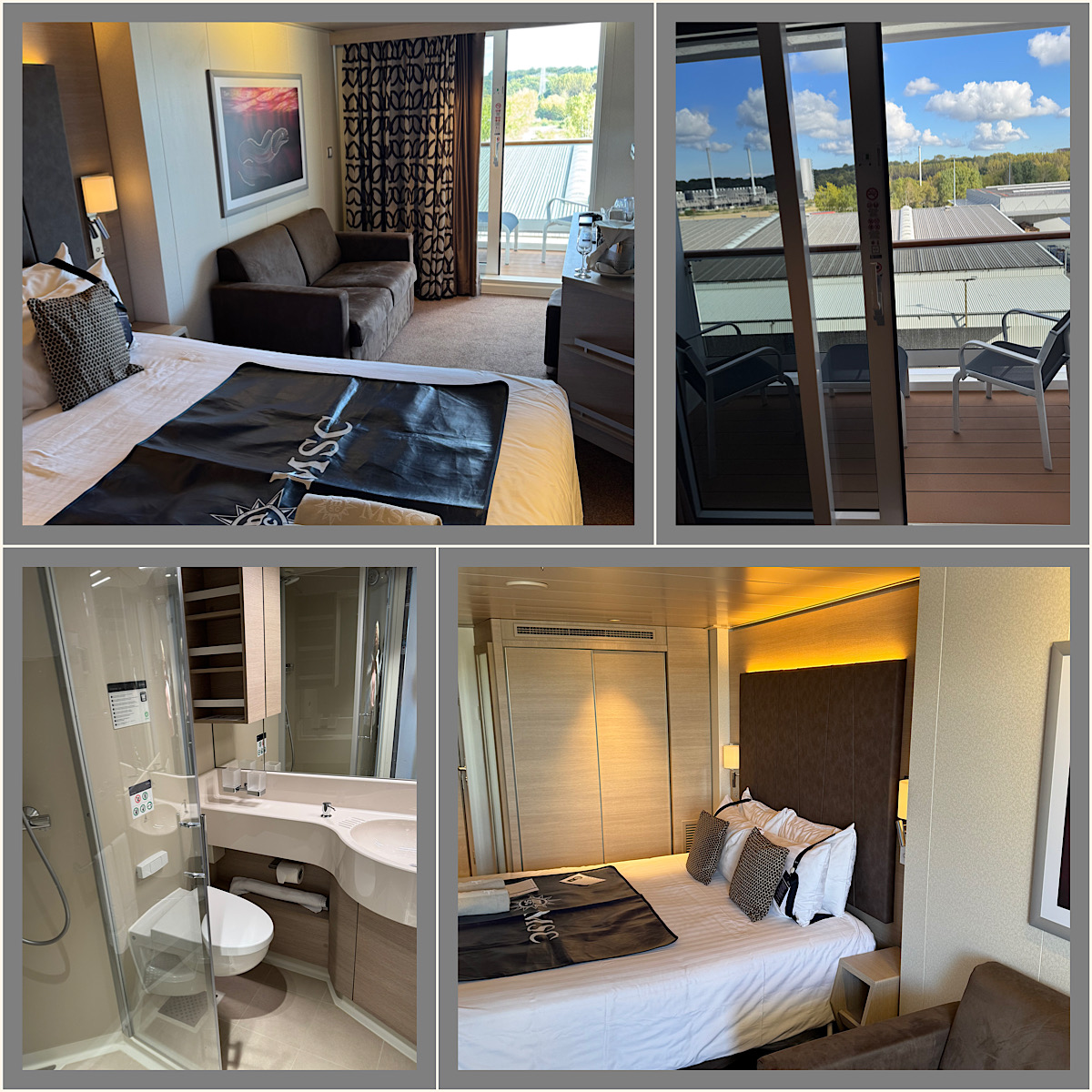 Ich war in Kabine 14238, einer Balkon Einzelkabine, von der man eigentlich nur schlechte Reviews liest. Mir hat sie seh gut gefallen, es war nicht zu Eng, vom Außenbereich des Buffet darüber habe ich nichts mitbekommen und der Balkon war gefühlt riesig und wurde von mir trotz des frischen Wetters ausgiebig genutzt. Er hatte den Vorsprung drüber und war daher vor Wind und Wetter super geschützt. Das Sofabett war sehr bequem und entgegen meiner Befürchtungen für mich mit 1,86 m nicht zu kurz. Ich habe den Kabinensteward darum gebeten, das Sofabett im "Bettmodus" zu lassen und tagsüber nicht umzubauen. Was mich gestört hat war die Badewanne, die ich als solche nicht benutzt habe und als Dusche für meine Körpergröße ungeignet war, ich musste immer leicht gebückt duschen. Aufrecht kann man da nur mit unter 1,80 stehen.