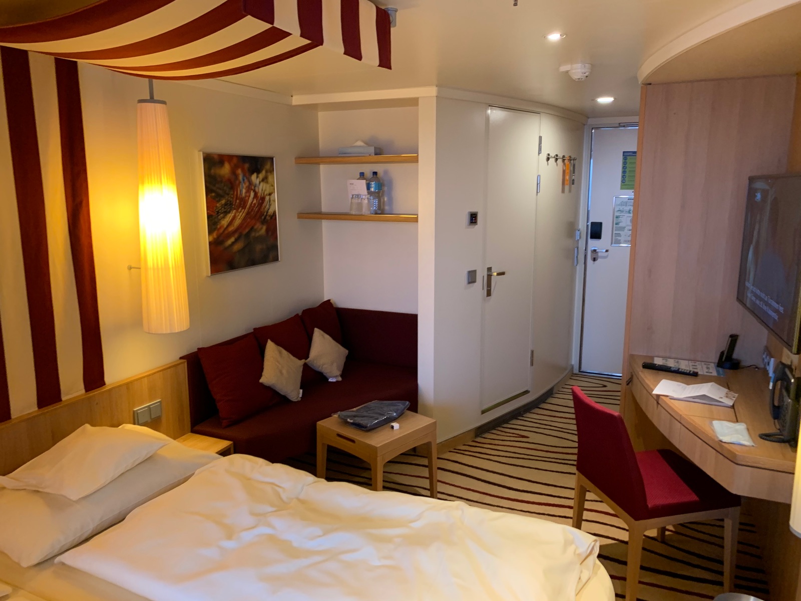 Die Lage fand ich super: Wenige Decks runter zu den Restaurants und zum Theater und das gleiche nach oben Richtung Beachclub. Das hintere Treppenhaus ist auch nah. Die Wege fand ich nicht lang.