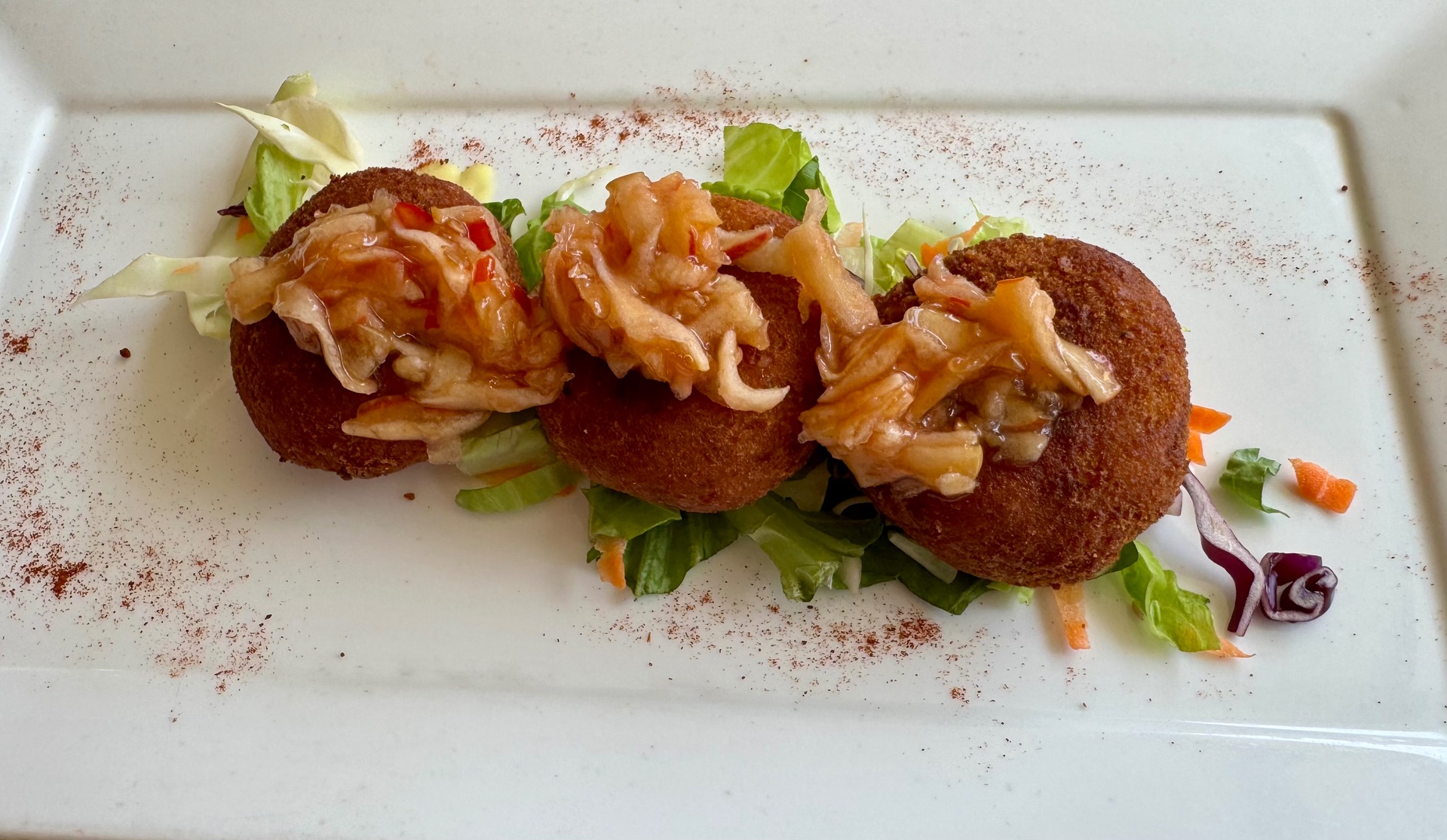 Mittagssnack , Crabecake und eine Art Eisschokolade mit Kalhua und karibischem Rum seeeeeeeehr lecker