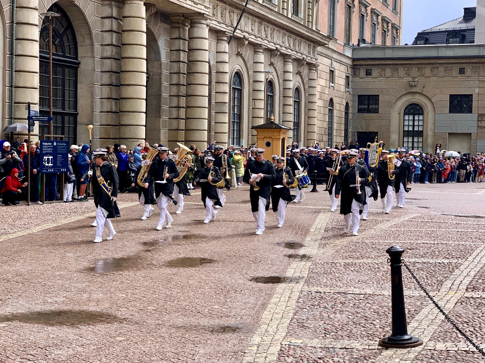 Ich habe auch im Kungliga Slottet( The Royal Palace )die Wachablösung erwischt.Die Schweden haben auch Humor- zum Schluss hat die königliche Rock Band - It’s Rain again gespielt
