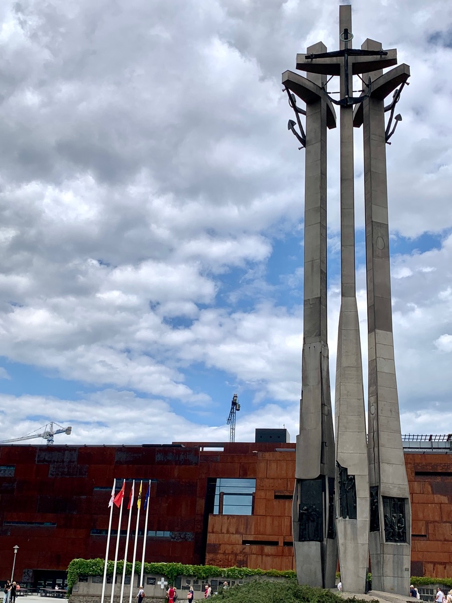 Dann kam der schönste Teil der Strecke: auf top ausgebauten Radwegen erst am Strand lang und dann durch die sehr interessanten Außenbezirke von Danzig in die Stadt. Leider haben wir dann nicht mehr angehalten, aber es gab sehr viel zu gucken. Und ich bin so begeistert, was für tolle Radwege es hier gibt. Sogar einen Kreisverkehr nur für Radfahrer. 😊