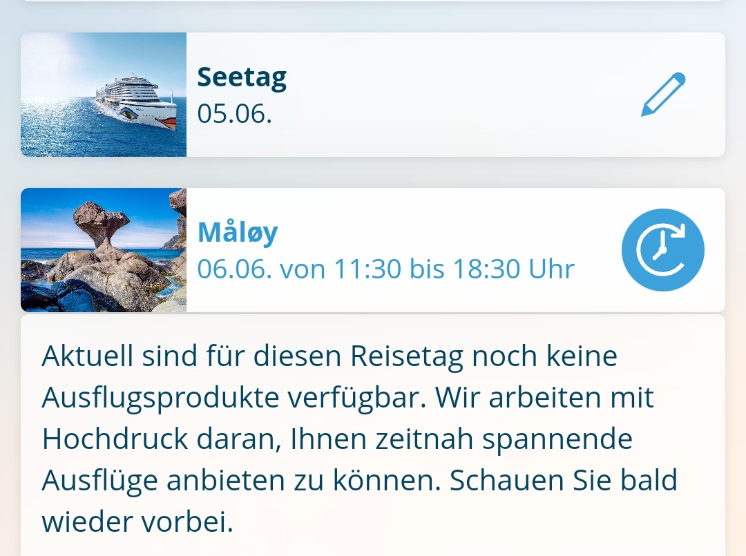 Habe soeben die Mail mit den Änderungen bekommen und bin ein wenig geschockt. AIDA wusste es seit Wochen und direkt darauf angesprochen heißt es nein wir wissen von nichts.