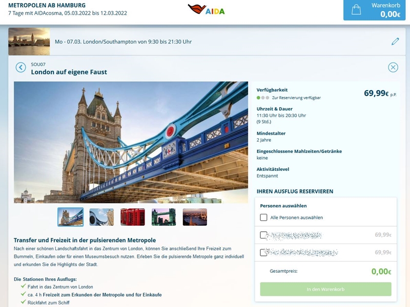 Anmeldeschluss: 12. März 2022 um 00:00Ja. Ich hoffe, er wird wieder eingestellt oder ist dann spätestens an Bord buchbar.