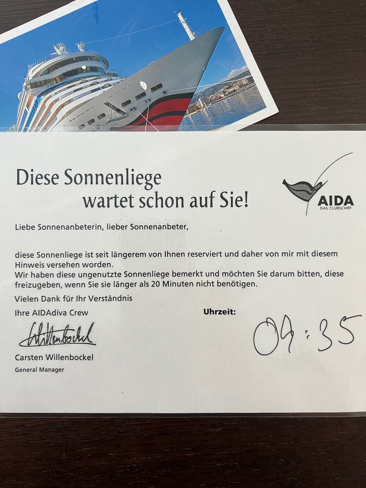 Und Nein, ich bin kein Liegen Reservierer, ich habe bis jetzt auf den Schiffen kaum Liegen überhaupt benutzt ![]()