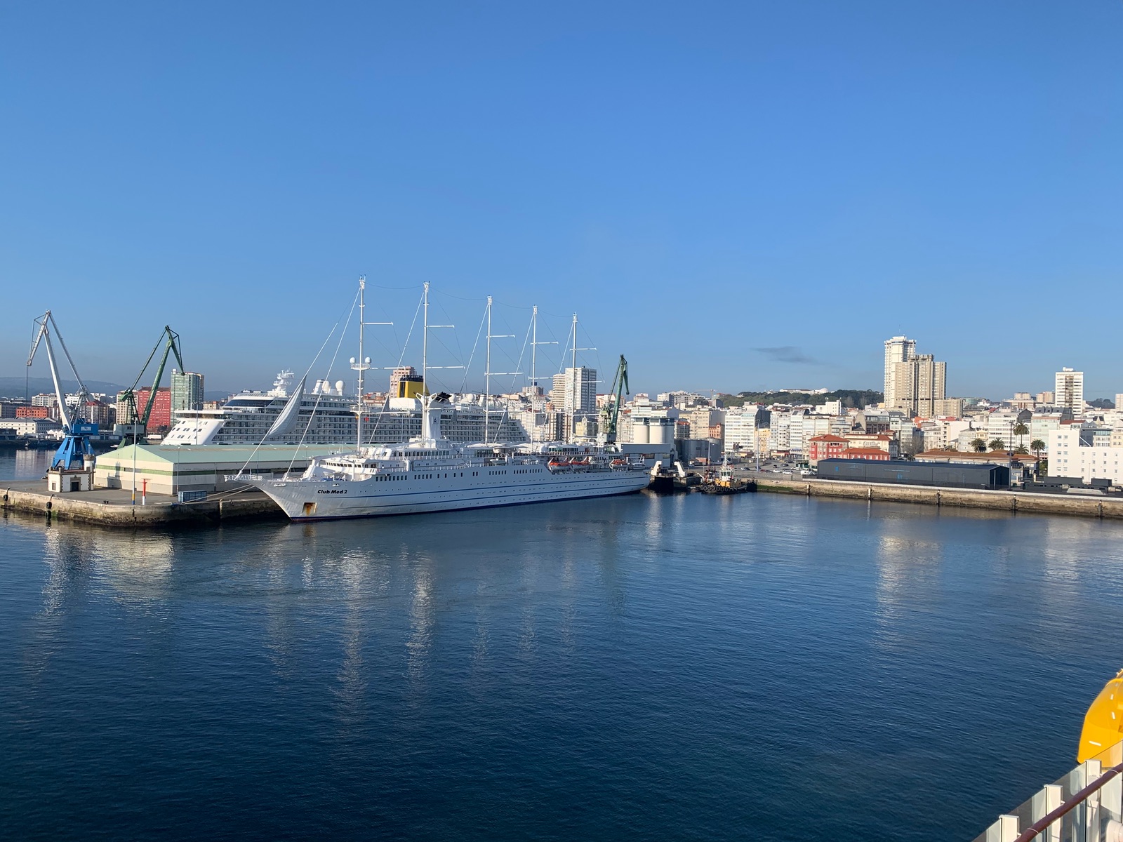 Heute empfängt uns A Coruña mit strahlenden Sonnenschein. Der gestrige Seetag begann mit Seenebel der sich gegen Mittag auflöste. Tagsüber Sonnenschein verbunden mit einem frischen Wind. An Bord geht alles seinen Gang bis die Corona-Warn App uns einen Kontakt am ersten Seetag anzeigt. Wir behalten erst mal Ruhe. Die Biscaya zeigte sich die ganze Nacht über von ihrer besten Seite so das sich Vollmond in der glatten See spiegelt.