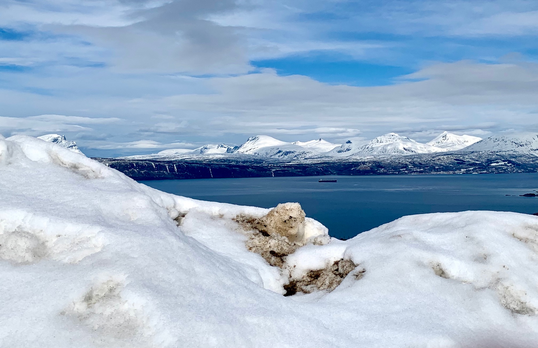 Noch ein Traum erfüllt. Skifahren mit Ausblick auf Fjord. Allerdings der Weg zur Gondelbahn ist weit( hin und zurück 10 km besonders nach oben gehen ist schon anstrengend ).Ich habe locker 45 Minuten gebraucht.