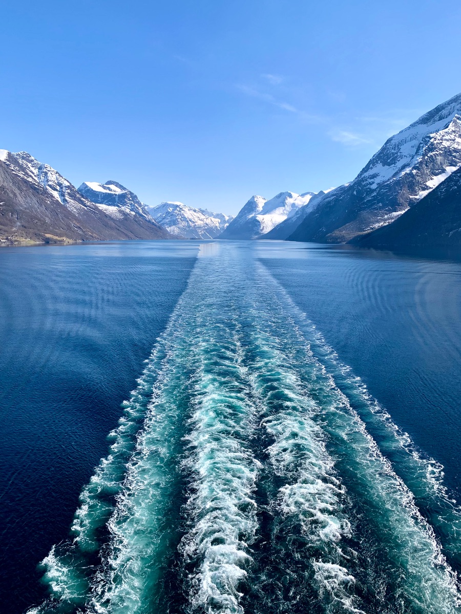 Am Ende des Fjords wurde gewendet und das Schiff mit der "großen Freiheit" beschallt